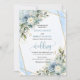 Minimalist Dusty Blue Gold Flowers Wedding Invite