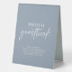 Minimalist Dusty Blue Modern Photo Guestbook Table Tent Sign. The word 'guestbook' is not editable. Can be used for weddings, bridal shower, baby showers, etc.