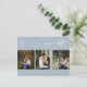 This save the date postcard features an elegant modern minimalist style of a three (tri) photo collage with a modern calligraphy of the wording "Save the Date" and elegant Serif fonts for a clean minimalist and modern look on a dusty blue background, which is a beautiful way to inform about your upcoming wedding. Announce to your family and friends you are getting married with this save the date postcard and add a personal touch with beautiful pictures of you and your soon-to-be better half. The simplicity of this design adds a touch of elegance to your wedding. It works well with many wedding themes and definitely a great addition to your wedding. Just customise the names and wording in a few easy steps and personalise the postcard with your photo of the happy couple and replace the QR Code with yours.