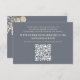 A simple budget-friendly details enclosure card, this template design features a QR code placement, minimalist watercolor eucalyptus floral, gold spring summer winter fall, a budget enclosure classic dusty blue, white botanical eucalyptus chic country, elegant website guest response or respond, modern classy typography reply, watercolor foliage leaves via website, scannable QR code website online, web address guest rsvp insert