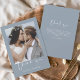 Minimalist Dusty Blue Wedding Thank You Photo Card