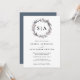 Minimalist Dusty Blue Winter Wreath Invitation. Perfect for a winter wedding. Customise this design with your personal info and your initial on the back side.