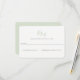 Simple dusty sage wedding RSVP cards. Minimalist design style features, simple script in dusty sage. Back of card, shown in solid dusty sage, features two template text lines for names and date.