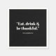 Bring sophistication and gratitude to your holiday table with these minimalist black “Eat, Drink & Be Thankful” napkins. Designed with clean white typography on a bold black background, they add a modern, stylish touch to any Thanksgiving or Friendsgiving celebration.