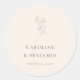 Minimalist Ecru Floral Line Art Elegant Wedding Custom Classic Round Sticker