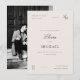 This is a modern minimal wedding invitation card featuring an elegant timeless design, with clean lines and a focus on typography. This template combines script calligraphy and a classic serif font in a unique layout, there is a minimalist monogram in the top right-hand corner, and the background is an off-white ivory color. This chic "old money" design is ideal for formal, black tie, or luxury wedding events. Cards reverse to an engagement photo of your choice, we have chosen a black and white photo for this design, but you can remove the filter using Zazzle's Design Tool. Edit most wording and all colors to make this minimal wedding invite fit your event needs and personal style. View the collection linked on this page for the full wedding suite or visit our store for more wedding invitations.