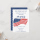 Minimalist 4th of July party invitation. Featuring the iconic U.S. flag in the centre, this invitation boasts a sleek design in classic red, white and blue. The back of the invitation features a charming pattern of white stars on a blue background, adding a festive touch to your invitation. Perfect for inviting friends and family to join you in celebrating this patriotic holiday, these invitations will set the tone for a memorable 4th of July get-together.