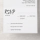 At the bottom of the invitation suite is a tear-away RSVP card, making it easy for guests to respond promptly. The card is pre-addressed and includes options for accepting or declining the invitation. A perforated edge ensures a clean tear, and the RSVP card is designed to be conveniently mailed back, streamlining the RSVP process for both you and your guests.