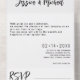 The main wedding invitation features the timeless beauty of the Elegance Collection, chraacterised by clean lines and modern aesthetics. The sleek black typography on pristine white promises a striking first impression, setting the tone for a celebration as refined as your love. The couple's names, along with the date, time, and venue details, take centre stage, presented with clarity and grace.