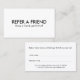 Simple black and white referral card for beauty related professionals. Clean cool fully customizable card. Perfect marketing tool for reward you best and new customers.