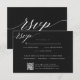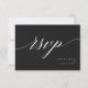 Simplify your wedding planning with our Minimalist Elegant Black Wedding RSVP Card. Featuring a sleek black background with clean, modern typography, this RSVP card embodies minimalist elegance. The refined design focuses on simplicity and sophistication, making it perfect for contemporary and stylish weddings. The monochrome colour scheme provides a timeless look that complements any wedding theme. With sections for guests to indicate their attendance and meal preferences, this card is both practical and beautiful. Personalise it with your wedding details for a cohesive and personalised touch. Ideal for couples who appreciate modern aesthetics, our Minimalist Elegant Black Wedding RSVP Card adds a touch of understated luxury to your wedding stationery.