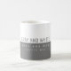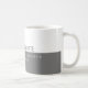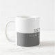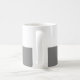An elegant, modern and minimalist half grey / half white mug, with three lines of text...