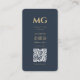 Minimalist Elegant Monogram Dark Blue QR Business Card