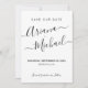 Minimalist Elegant Name Script black white Wedding Save The Date