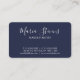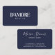Professional Elegant Navy Blue Business Card with rounded corners general name in a luxurious Chic style followed by speciality in front, full script name, career and info in white.