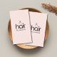 Minimal fully customisable business card template with black scissors icon/ bold hair text and pastel background. Elegant and simple design. Perfect for beauty salon, hair stylist, hairdresser.