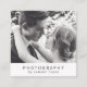 Modern photography business cards with a simple design featuring a square photo with your business name in black over a white block. The backside has your contact information. These contemporary minimalist business cards are perfect for a photographer.