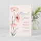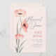 These simple 5” x 7” wedding rehearsal dinner cards feature a single coral watercolor poppy with the words, "Let’s Rehearse," in grey with placeholders for the wedding couple’s names, dinner location, address along with the dinner & rehearsal times. Add your wedding website to create your own QR code on the back.