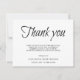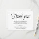This funeral thank you card features a sophisticated minimalist design, centering on a beautiful, flowing brush script for the "Thank you" heading. The clean layout combines classic serif and modern sans-serif typography, creating a timeless and respectful tribute. With its stark black-and-white palette and ample white space, this design offers a calm, elegant way to express your heartfelt gratitude. Perfectly suited for those seeking a contemporary yet solemn memorial stationery to honor a loved one's memory.