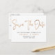 Elegant simple vow renewal save the date postcard. Design features of ''save the date'' in modern calligraphy script in cooper gold colour on white background. Add your message and more details on the back. All Rights Reserved ©MSJ_DESIGNS
