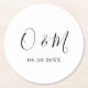 Minimalist Elegant White Monogram Classic Wedding Round Paper Coaster