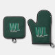 Minimalist Emerald Green Personalized Monogram Oven Mitt & Pot Holder Set