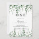 This minimalist eucalyptus first birthday party invitation is perfect for a modern birthday party. The design features watercolor hand-drawn elegant botanical eucalyptus branches and leaves.