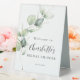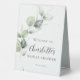 Celebrate your impending nuptials in style with our beautiful greenery eucalyptus Bridal Shower Table Top Sign. A must-have for any bridal shower or engagement party, this gorgeous table top sign adds a touch of class to your celebration. Showcasing a sophisticated dusty blue background adorned with an array of floral motifs, our sign will certainly bring a romantic, chic aesthetic to your special event.