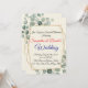 Elegant wedding invitation featuring minimalist watercolor eucalyptus leaves and a gold geometric frame on a cream background. Perfect for modern weddings, bridal showers, or engagement parties.