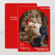 A minimalist family photo Christmas card with a red background. The card has white lettering and an arch design for your photo. Simply add your photo and message(s), add this card to your cart, and send out holiday joy to your friends and family.