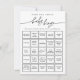 Find the Guest Baby Bingo shower activity card featuring a minimalistic design with calligraphy. Customise with your questions if desired.
