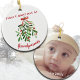 Minimalist first Christmas as grandparents ornament. Elegant and simple watercolor greenery with berries details and red bow detail. This customisable grandma and grandpa ornament the perfect gift this holiday. Slip your favourite photo of your child, the name and year. You can find more wonderful personalised Christmas gifts in the Personalised Christmas Gift Collection in the Beautifully Abstract store.