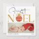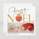 This adorable Christmas card features a heartwarming photo of a sweet baby in a Santa hat, announcing their first Christmas in a playful and stylish way. The front of the card features the words "First Noel" with a festive ornament, and "2024" in a bold, elegant font, making it a perfect way to commemorate this special occasion. The overall design is both timeless and festive, perfect for sharing the joy of a newborn baby's first Christmas with loved ones.