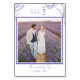 Elevate your table decor with our "Minimalist Floral Couple Table Card." Featuring a charming couple photo within a sleek purple frame, this design exudes romance and sophistication. Surrounding the frame, delicate white flowers on a purple background add an elegant touch. At the top of the card, customisable text reads "Table 3," ready to be replaced with any other number, providing functional elegance for your event.