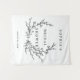 Minimalist black and white floral line art bridal shower tapestry with elegant botanical design. Editable via Template Objects in the Zazzle editor.