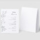 Add an elegant touch to your reception tables with this Minimalist Black Floral Tent Wedding Menu, featuring delicate botanical outline artwork and a clean modern layout. Perfect for place settings and table décor, this folded tent-style menu suits black and white wedding themes, contemporary celebrations, and timeless minimalist floral stationery suites. Fully customisable with your names, date, and menu details for a polished and coordinated wedding table setting.