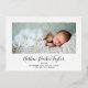 This minimalist foil the more the merrier birth announcement foil holiday card is the perfect simple holiday greeting. The design features classic luxurious pressed foil typography paired with a rustic yet elegant script font with hand lettered style. Choose silver, gold or rose gold foil text on the front. Personalise the card with your family photo, names and year on the front and your baby birth announcement on the back.