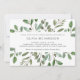 This trendy bridal brunch invitation features a frame of abundant watercolor green leaves and a few tiny berries on a clean, white background. The back of the invitation also says "bridal brunch" in elegant calligraphy.