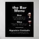 This minimalist formal black wedding bar menu poster is perfect for a rustic wedding. The design features a beautiful font in a black background to embellish your event.