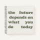 A clean and inspiring notebook for your daily goals. Featuring a vintage-style sage green font on a warm cream background, this design reminds you that your actions today shape your tomorrow. Perfect for students, planners, and anyone who loves a retro aesthetic.