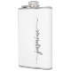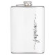 Girly Minimalist Simple Black And White Monogram Name Signature Script Custom Personalised Flask. These design featuring your first name in a pretty hand lettered style swash tail font signature typography black script on white colour background. These are easy to customise it. Great stylish feminine bachelorette party gift, housewarming gift, also for Bachelorette Party, birthday, mother’s day, wedding, sweet 16 birthday party, bridal shower party, for graduation party and It’s for the girl who loves unique stylish things.