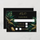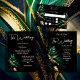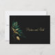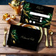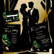 This wedding card features an elegant, minimalist design with a black background and gold text, creating a sophisticated and formal aesthetic. The script and serif fonts are used in a balanced composition, giving it a modern yet classic feel. The bottom corner is adorned with botanical illustrations in shades of green and gold, adding a touch of nature and luxury to the overall design. Personalise the card with your names and details of the wedding. You can download the card to your mobile device or computer. Card was created with the help of ai.