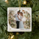 Minimalist Gold Christmas Wedding Photo Ceramic Ornament