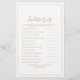 This minimalist gold Find The Guest wedding game is perfect for a simple wedding reception. The modern romantic design features classic gold and white typography paired with a rustic yet elegant calligraphy with vintage hand lettered style. Customizable in any color. Keep the design simple and elegant, as is, or personalize it by adding your own graphics and artwork. Personalize the card with the names of the bride and groom and the wedding date. You can personalize the game questions by clicking the "customize" button.