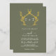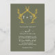 Perfect for a boho-inspired wedding, this elegant invitation features a sleek greenery leaf silhouette in luxurious pressed gold foil. Set against a rich olive green background, its minimalist mountain bohemian style exudes natural charm. Personalise with the bride and groom’s initials for a unique touch.