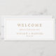 This minimalist gold font hanging seating chart welcome header is perfect for a simple wedding. The modern romantic design features classic gold and white typography. Customisable in any colour. Keep the design simple and elegant, as is, or personalise it by adding your own graphics and artwork. The card prints on the front and back (double-sided). Please check the collection for the coordinating table number seating chart cards.