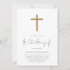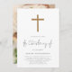 Minimalist Gold Glitter Cross Photo Christening Invitation