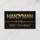 A black cover features a faux gold "HANDYMAN" signage at the top of the card. Just below this is a handyman tools demarcation line. The tools inside this line can represent some of the services that you offer e.g. the hand drills can represent carpentry, the hammers for remodeling, the brushes for painting-interior design and the fork-trowel for landscaping or gardening. Their usage is left to your own interpretation. The contact details are at the base of the card.