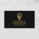 An all black cover features a gold placard border near the base of the card. These gold lines can be moved anywhere around the card. Here lies the business name in faux gold with a creative gold "bulb-spanner-home" logo you can use, at the top.