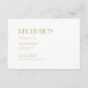 This minimalist gold modern art deco wedding reception details enclosure card presents both an elegant, black tie formal, and a casual, simple design for a traditional or more rustic marriage celebration. The plain, neutral gold and white layout with unique, classic typography alludes to minimal boho or classy retro making it a perfect design for any event theme.